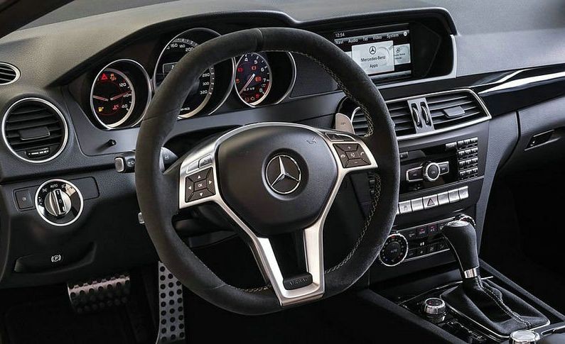 C63 AMG Edition 507版本,最大功率507马力,扭矩610牛米。新Edition 507标配14.2英寸双片刹车盘,前六后四活塞红色卡钳。