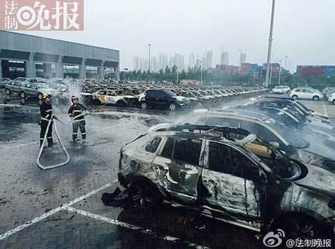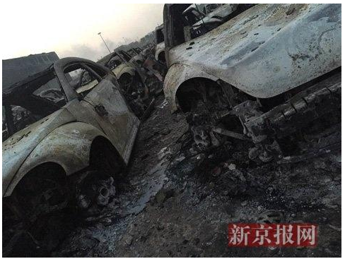 另据新京报报道,今早5时许,新京报记者在事发现场南侧约1公里处看到,一个有四五个足球场大小的停车场上,停有上千辆全新汽车,几乎全被烧毁。